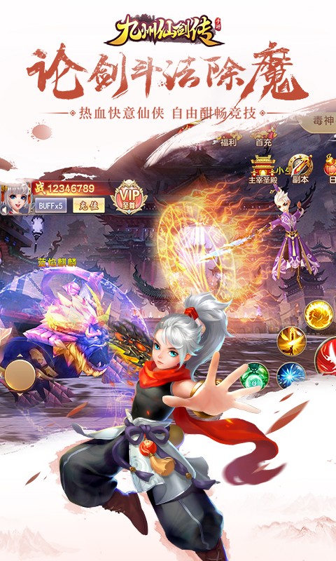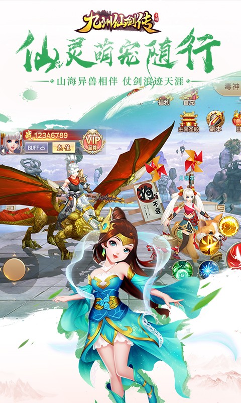 《九州仙剑传》以上古山海异兽为故事背景,配以唯美和绚丽的3D场景、角色、特效等视觉画面效果、玄幻风格的音乐,多方位展现出仙风道骨、侠骨柔肠的整体氛围,简单爽快的轻松仙侠类手游邀您一起畅游快意仙侠!